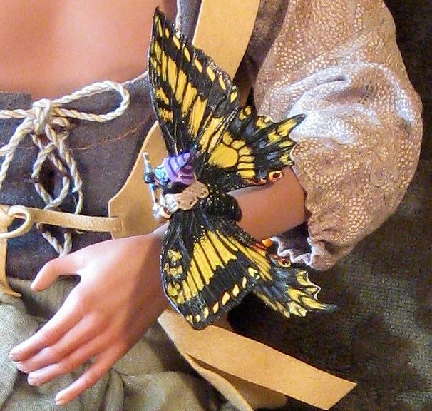 She employs movable armatures to attach the head, torso, hands and feet. She installs fine glass eyes in the heads and attaches mohair wigs that she creates herself. Finally, she sews garments for her dolls using exquisite fabrics and beautiful stitching. For some of her dolls, she also makes detailed accessories from various materials.